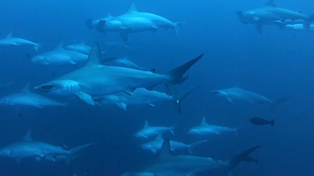 Le immersioni si faranno principalmente sulla punta Nord, dove gli incontri con i branchi di martello alla profondità di 35/40 metri, toglieranno il fiato a chiunque. Dal pianoro a 30 mt ci si sporge verso il blu in attesa dello squalo martello “sentinella” che perlustra la zona, e poi ritorna spesso con tutto il gruppo di una ventina di squali, pronti a girarci attorno