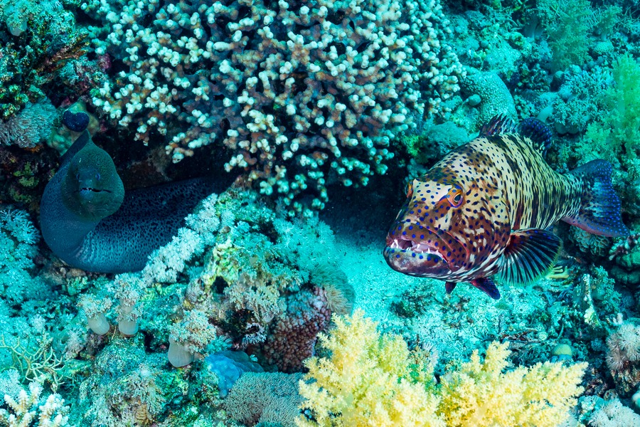 Io e il mio amico e fotografo Davide De Lorenzi, abbiamo notato che nei mesi di giugno a Ras Mohamed succedeva una cosa strana, una cernia e una murena gigante sembravano combattere tra di loro davanti ad una tana. Amando molto le murene, soprattutto una gigante a Ras Mohamed, ho cercato di difenderla dagli attacchi della cernia, senza sapere quello che realmente stava accadendo. Stavano collaborando. Addirittura la cernia indica con movimenti della testa alla murena dove si trova la preda. Una cosa davvero incredibile. Da quel momento e per tutta l’estate, ogni volta che mi immergo a Ras Mohamed, vado a cercare la cernia e la murena per osservare questa collaborazione incredibile.